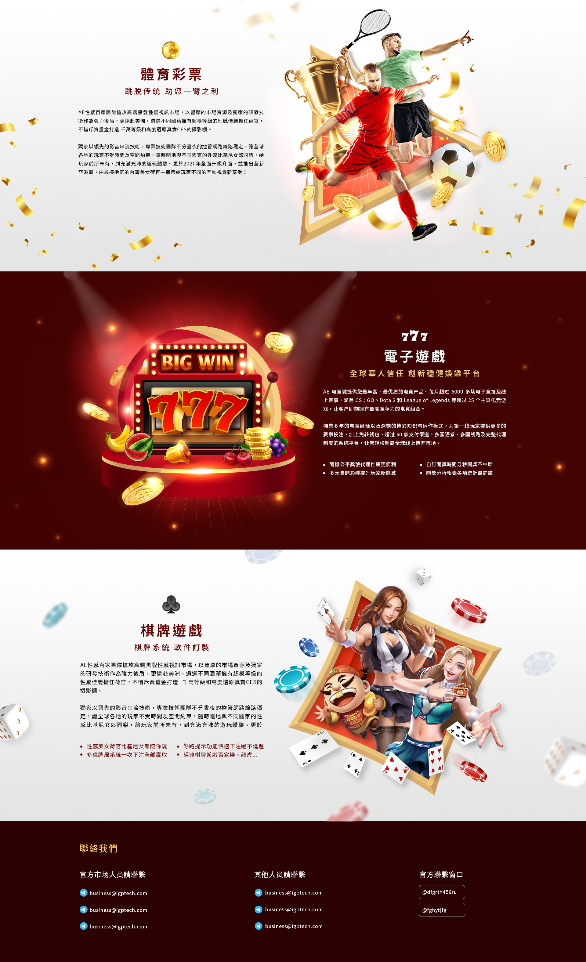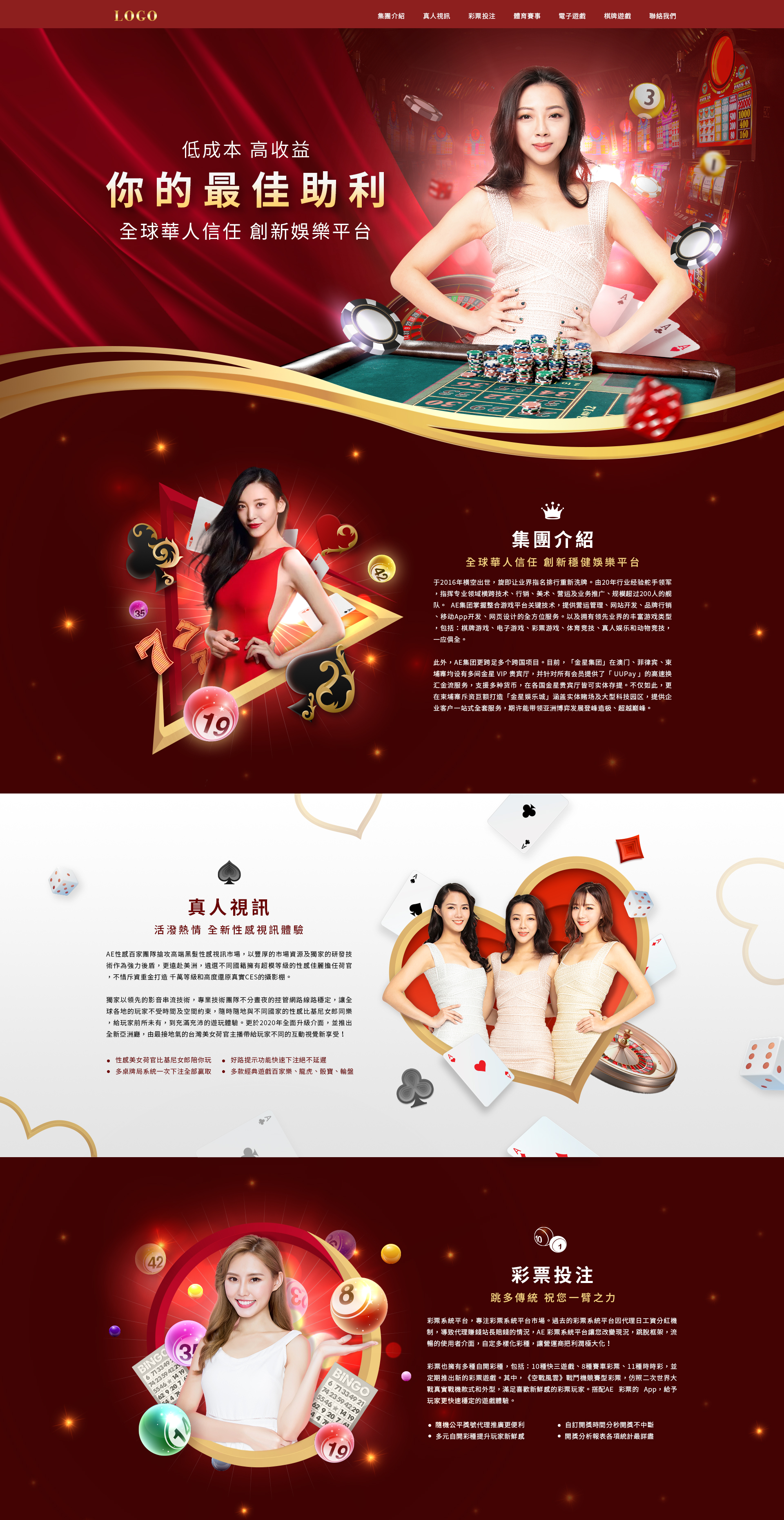 此為娛樂遊戲的一頁式宣傳網站,使用紅白交錯的區塊呈現每個遊戲介紹,用主題大圖的呈現方式,添加視差效果,展現整體網頁的空間活潑性。